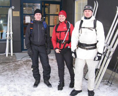 Jari, Johanna ja Marko kävivät kokeilemassa Kaukopartiohiihdon uudet lenkit. Sää vaihteli pikkupakkasesta plusasteisiin ja kumpanakin päivänä sateli välillä lunta. Hiihdossa oli tarjolla kolme noin 75 kilometrin lenkkiä ja varusteina olivat tuttuun tapaan valtion metsäsukset.