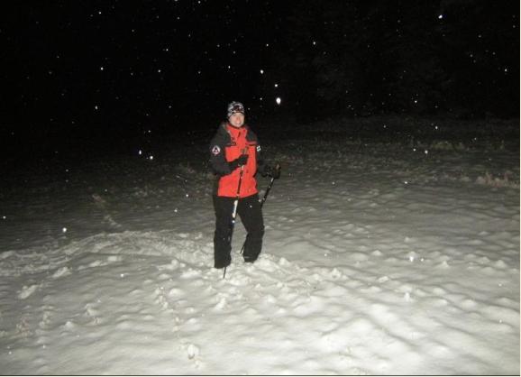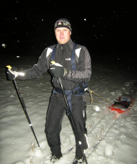 Lunta! Ja vieläpä yli kymmenen senttiä! Kotonamme alettiin heti kaivaa esiin suksia. Jari nappasi myös ahkion peräänsä ja latasi siihen 70 kiloa painoa. En malttanut pysyä poissa suksilta, vaikka olin vielä toipilaana influenssa jäljiltä. Lupasin mennä tosi hissukseen ja sain luvan lähteä matkaan. Lumi oli tosi märkää ja tarttui suksen pohjiin könteiksi. Oli silti hienoa päästä hiihtämään. Kävelin pari tuntia hissukseen sukset jalassa – vähempikin olisi varmaan riittänyt, mutta ei tauti onneksi tuntunut siitä olevan moksiskaan. Jari innostui vetämään ahkiota neljä tuntia.