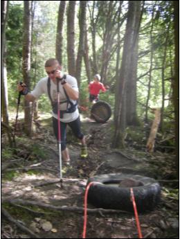 Tästä jalosta treenimuodosta löytyy silti melko vähän tietoa. Koska renkaanveto on ehkä helpoin tapa simuloida ahkion vetoa ilman lunta, oli laji käytössä myös meidän retkikuntamme harjoitusmuotona ennen lumen tuloa. Syksyn aikana jokainen retkikuntamme jäsen veti tuttua rahinaa pitävää seuralaista perässään yhteensä ainakin 50 tuntia.