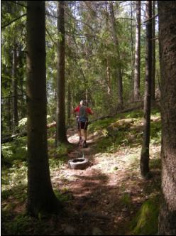 Paljonko renkaaseen sitten pitäisi laittaa painoja? Sopiva painomäärä vaihtelee sekä treenin pituuden, tavoitteiden että vetäjän mukaan. Oman näkemykseni mukaan treeni pysyy monipuolisempana, kun välillä vetää kevyitä treenejä kevyellä renkaalla ja välillä taas latoo kyytiin raskaat painot. Nyt syksyllä treenipainoni ovat vaihdelleet niin, että renkaan kokonaispaino on ollut kevyimmillään 17 kg ja painavimmillaan 35 kg. 17 kilollakin treenin saa halutessaan raskaaksi, kun rengasta vetää kilpahiihtoladulla ja ottaa kaverin sauvakävelemään kannustajaksi. Ehkä yleisin renkaan kokonaispaino treeneissäni on ollut 27-28 kg. Maastosta ja alustasta riippuen se vastannee noin 70-90 kg:n ahkiota.