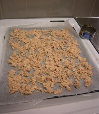 Tonnikalat kasviskuivurissa.
