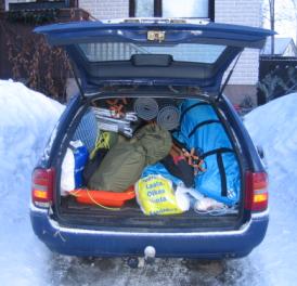 Ohi on! Nimittäin monien viikkojen pakkausrumba. Olemme pussittaneet läjäpäin ruokaa (reilu 30 kiloa per naama), valinneet mukaan lähtevät varusteet, askarrelleet pulkkia ja tehneet kaikenmaailman hankintoja ja virityksiä. Retkikunnan päivystävä lääkäri Iikka rakensi meille ensiapusetin. Valtaosa varusteista pakattiin suureen laatikkoon, jonka Lauri rakensi yhdessä isänsä kanssa.