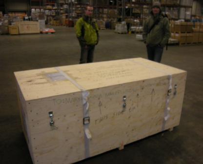 Rahtilaatikkomme on toimitettu DSV:n huomaan. Ensin DSV Road kuljettaa laatikon rekalla Tanskaan, josta DSV Air & Sea lennättää laatikon Grönlannin Kangerlussuaqiin. Siellä kohtaamme varusteet muutaman viikon kuluttua.